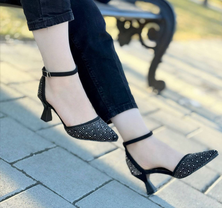 کفش پاشنه بلند زنانه رویه نگینی زیره دلتا پاشنه 7سانت